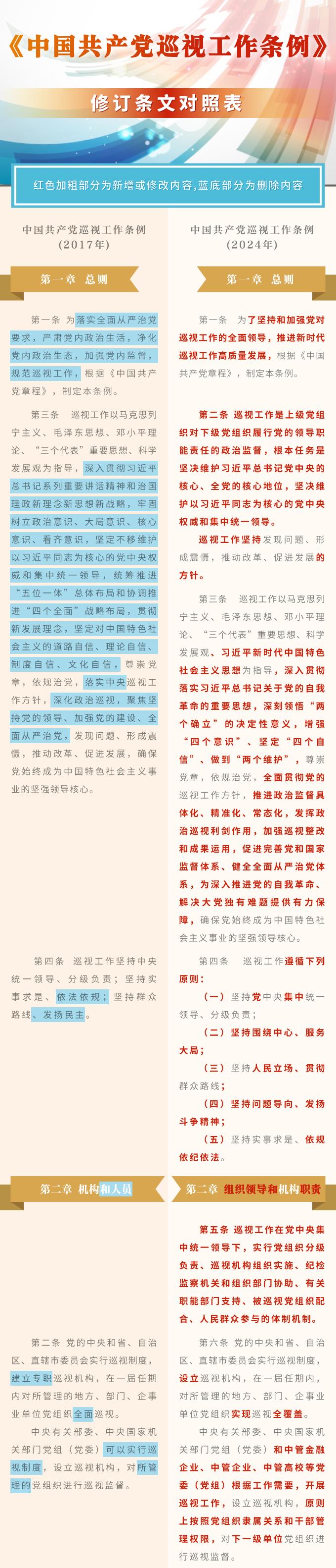 《中國共產黨巡視工作條例》修訂條文對照表
